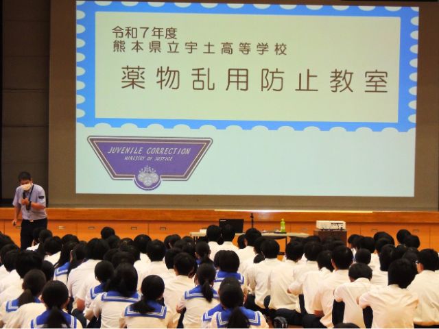 法務省年支援センターくまもと法務教官の鶴田さまを講師に迎え、第一体育館で行われました。