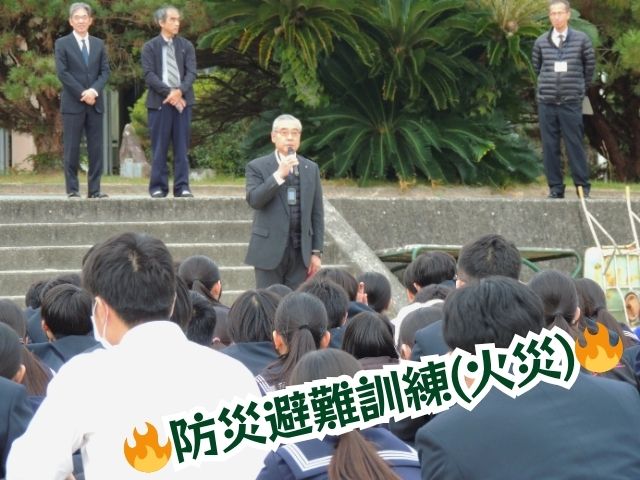 校内放送で家庭科調理室からの火災発生がアナウンスされると、各クラスごとに慌てず速やかに避難することができました。