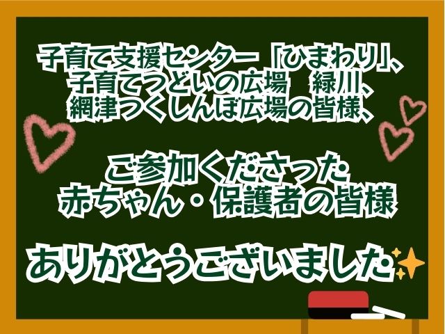 参加してくださった赤ちゃん・子どもたち、一緒に遊んでくれてありがとうございました😊
