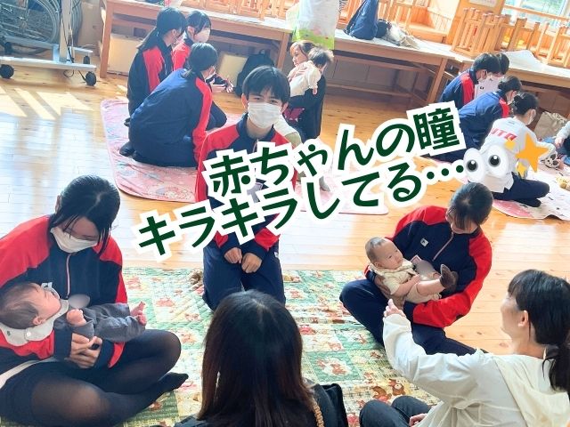 生徒たちは授業で学んではいたものの、間近で見る赤ちゃんの小ささ、愛らしさ、くるくる変わる表情に感動の連続でした✨