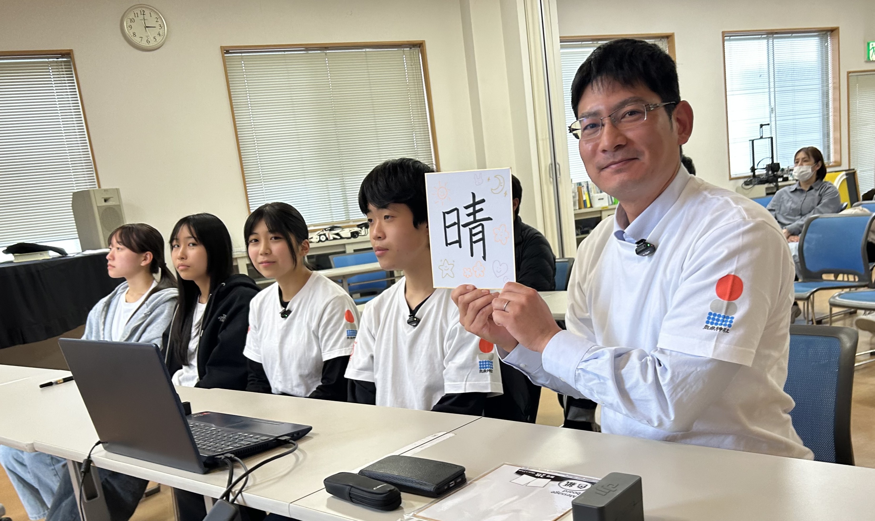 地学班は話し合いの結果、「晴」と予想しました。(色紙の文字は、地学班の生徒が書いています。)