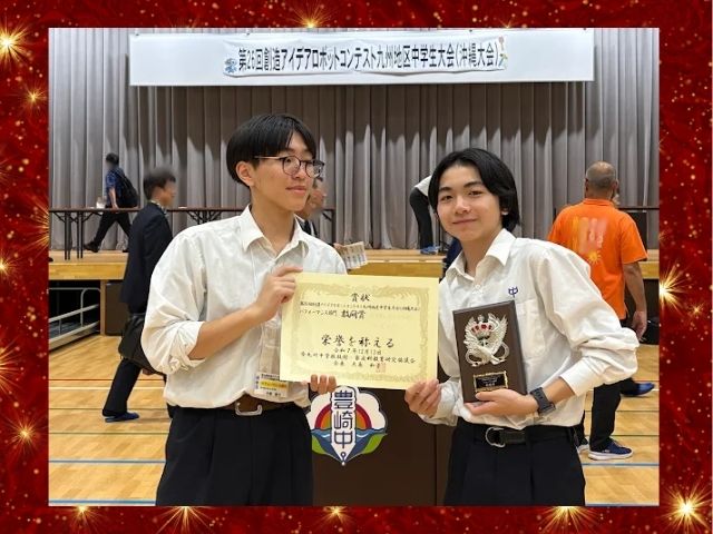 勝野さん・中原さん(宇土中3年生)の「誰でも使えるガチャガチャ」がパフォーマンス部門で敢闘賞(3位相当)を受賞し、全国大会(2026年1月31日(土)@東京都立六郷工科高校)への出場が決定しました!