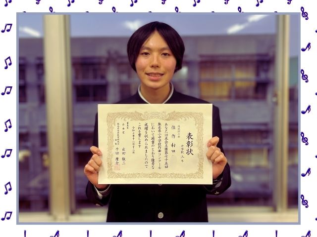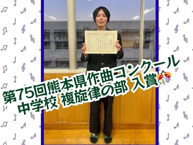 「第75回熊本県作曲コンクール」に宇土中3年の村田さんが入賞されました!