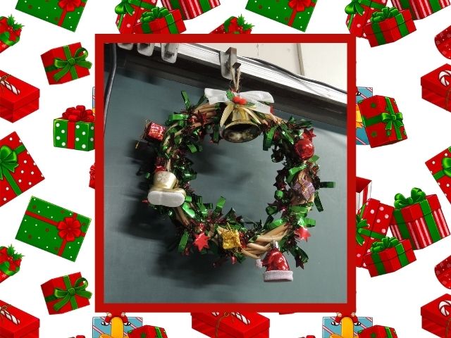 校内でもクリスマスツリーやリースを見かけることがあります。