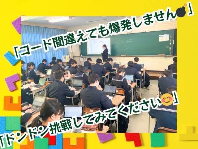 授業ではゲームを通じて、操作した生徒が「使いづらい」「分かりづらい」「何が理由だろう」と思案し、その原因を見つけ出して操作しやすいようにプログラミングを書き換えました。