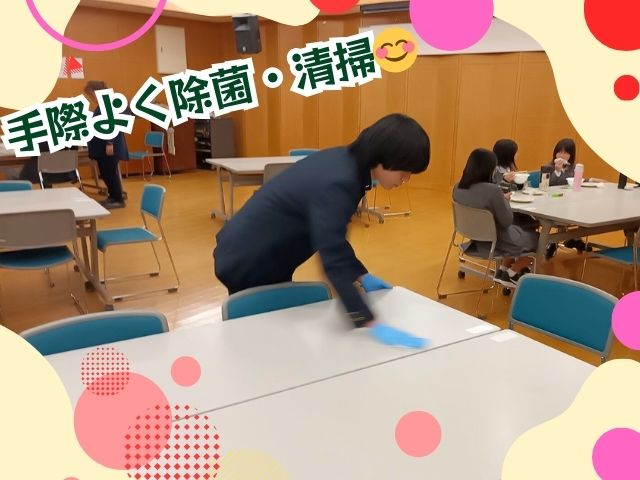 放送部の高野さん・宮崎さん(高2)が司会進行を、ボランティア委員会の上田さん(高2)、赤穂さん、冨永さん、田島さん、吉村さん(高1)が昼食会場の配膳や後片付けなどの作業を率先して務めました!