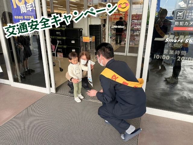 2026年2月4日(水)夕方、MrMax松橋店および宇土シティにて、宇城警察署主催の交通安全キャンペーンに本校生徒7名(高2生の富田さん、高1生の福田さん、朴さん、立花さん、稗方さん、山下さん、松﨑さん)がボランティア参加し、反射タスキの配布を行いました。