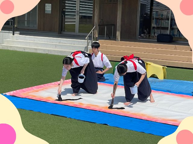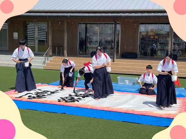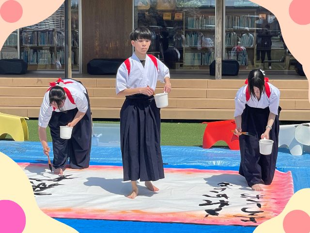 不知火美術館・図書館の4周年記念イベントにて、本校書道部メンバーがパフォーマンスを披露してきました!