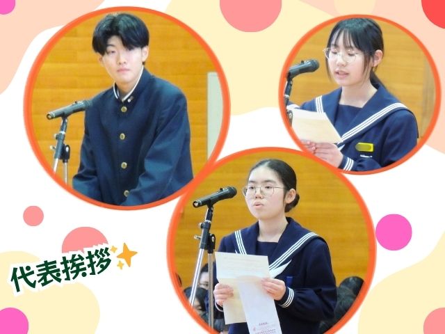 対面式では、宇土中の加野さん、宇土高の田中さんが新入生を代表して挨拶をし、生徒会長の稲津さんが歓迎の言葉を述べましたました✨