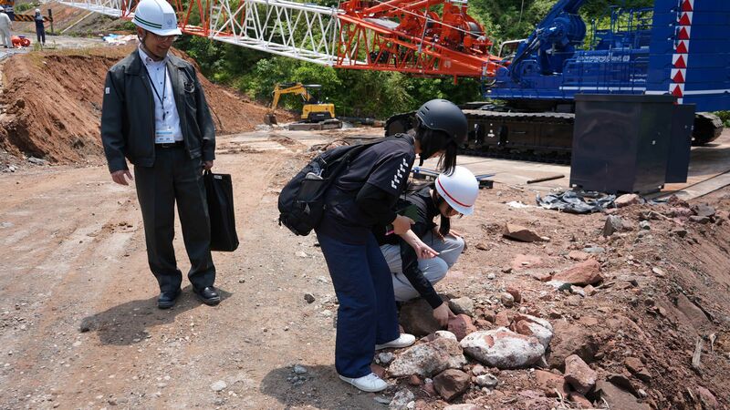 今回は、工事を進める国交省と工事を行う企業さまの研究に対するご理解とご協力をいただき、工事で露出した大規模な露頭を見せてもらうこととなりました。