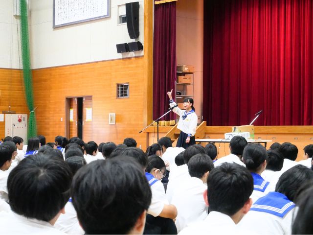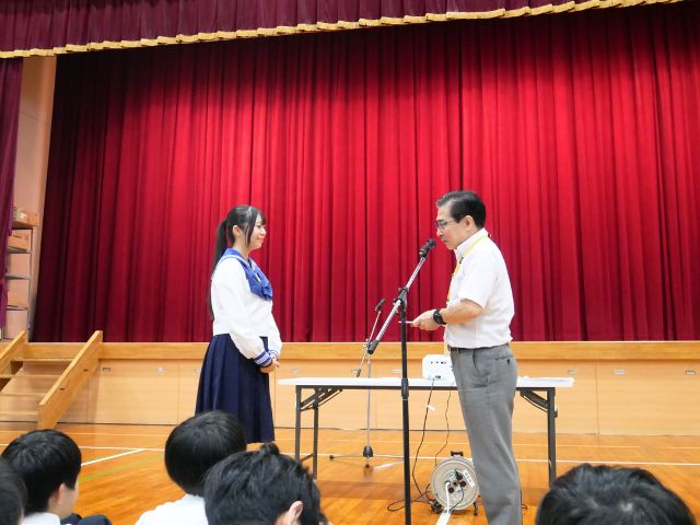 劇、ダンスといったクラス一丸となっての発表はもちろん、海外研修報告、中学環境美化委員会の報告なども行われました。