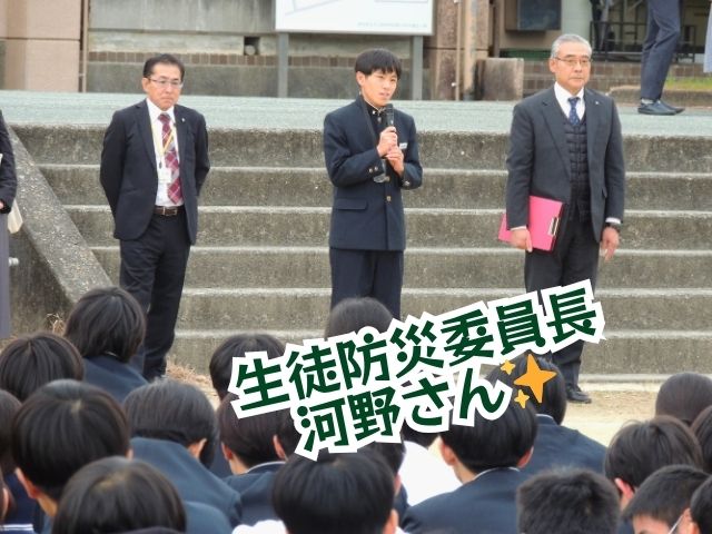 校長先生と生徒防災委員長の河野さん(宇土高2年)から話がありました。
