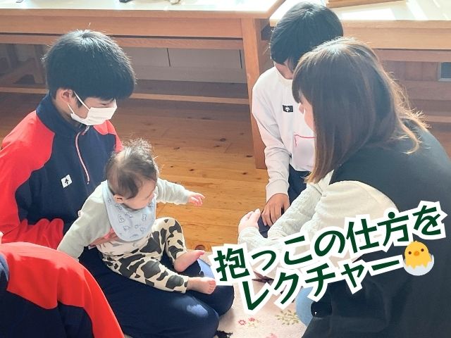 生徒たちは授業で学んではいたものの、間近で見る赤ちゃんの小ささ、愛らしさ、くるくる変わる表情に感動の連続でした✨