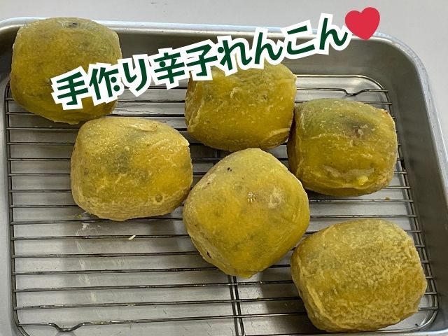 特に辛子れんこんでは、穴にまんべんなく辛子味噌を詰める作業が楽しく、衣をつけて揚げた後は切って断面を見るのが楽しみでたまりませんでした♬
