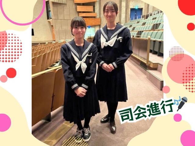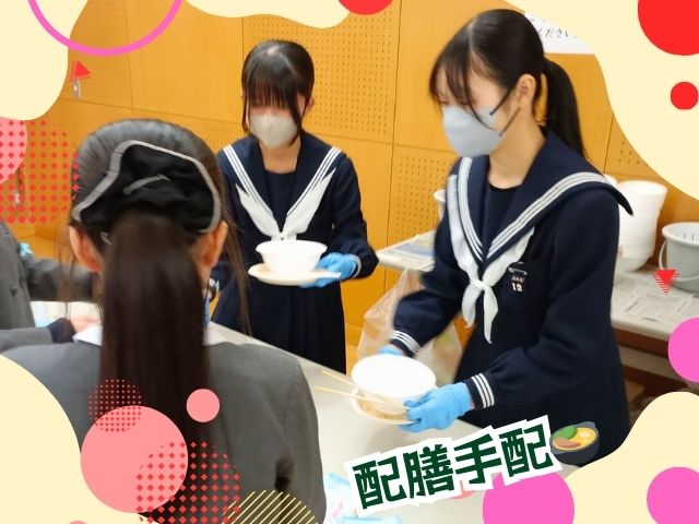 放送部の高野さん・宮崎さん(高2)が司会進行を、ボランティア委員会の上田さん(高2)、赤穂さん、冨永さん、田島さん、吉村さん(高1)が昼食会場の配膳や後片付けなどの作業を率先して務めました!