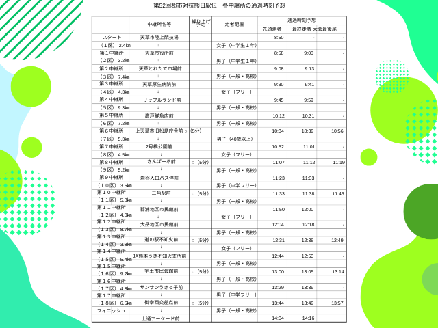 コース表と通過時刻予想をご確認いただき、ぜひ最寄りの応援スポットで声援を送ってみませんか?