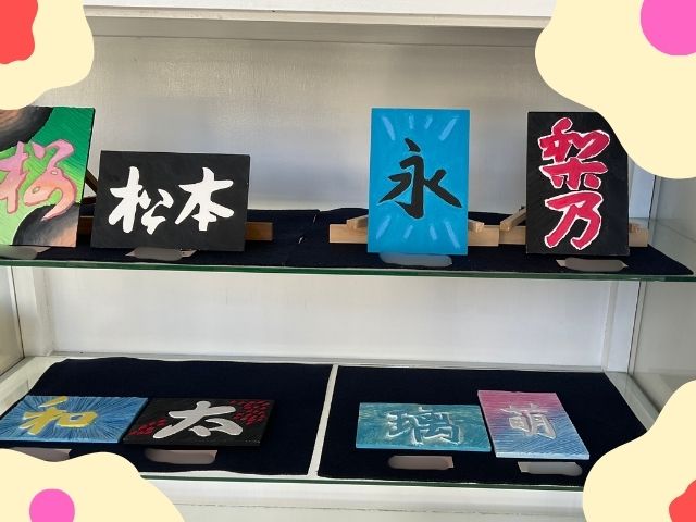 2026年2月25日(水)~3月14日(土)にかけて、1生が書道の授業で制作した刻字作品の後半分を展示しています。