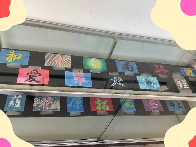 展示場所は進路室横から3棟へ向かう廊下です。ぜひご鑑賞ください。