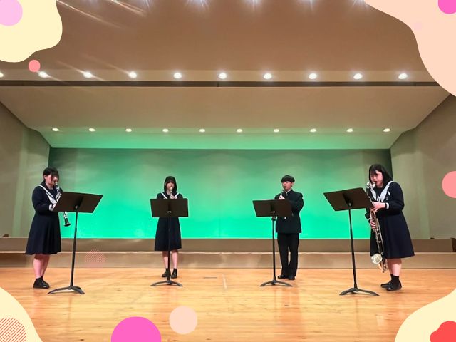 クラリネット四重奏として、立花さん、猿渡さん、谷口さん、宮本さんが高1生チームで出演✨