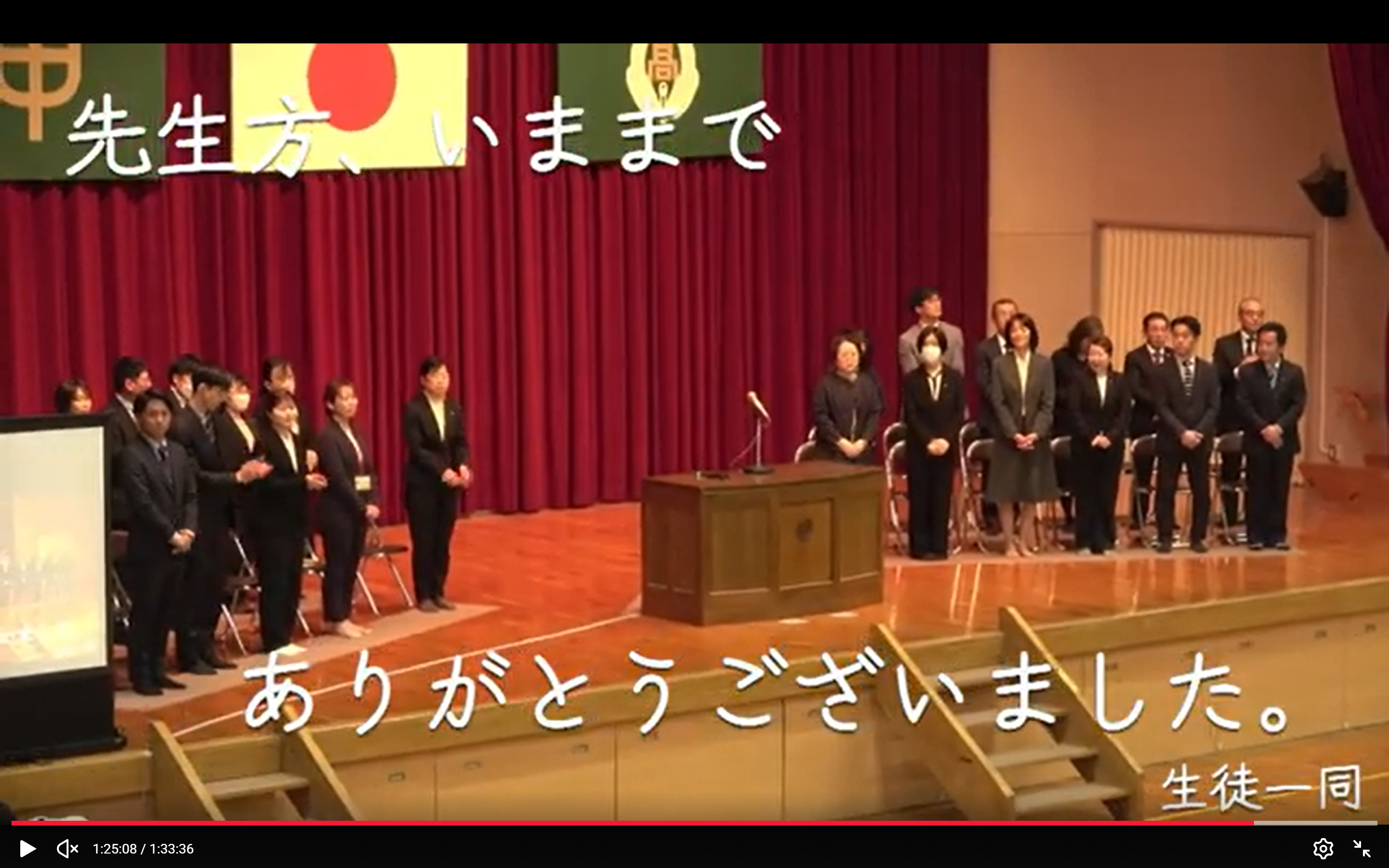 式では、授業や部活動で共に笑い、学んだ日々を振り返り、先生方お一人おひとりから温かく力強いメッセージをいただきました。