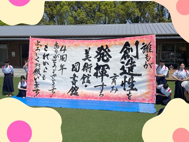 不知火美術館・図書館の4周年記念イベントにて、本校書道部メンバーがパフォーマンスを披露してきました!