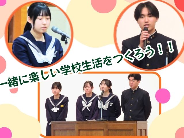 対面式では、宇土中の加野さん、宇土高の田中さんが新入生を代表して挨拶をし、生徒会長の稲津さんが歓迎の言葉を述べましたました✨
