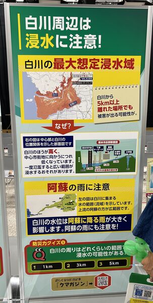 会場では昨日からずっと発表が続いており、熊本城ホールや花畑広場では様々な防災にまつわる屋外展示がされていました。