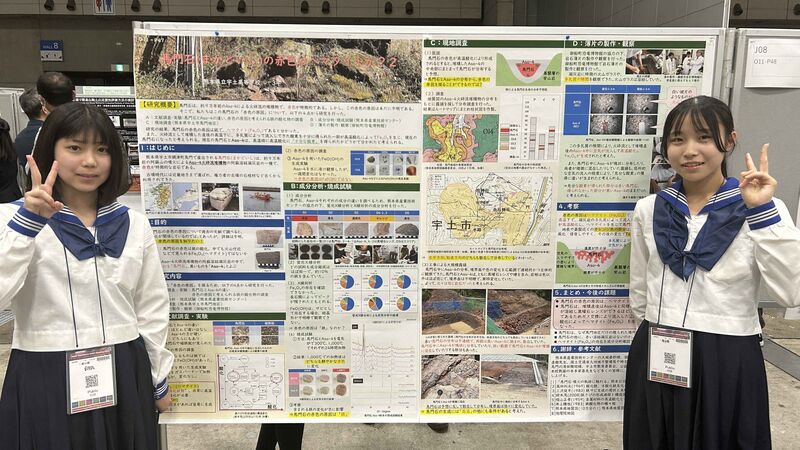 千葉県の幕張メッセで行われ、とても広い会場には、研究者のポスターに混じって、事前審査を通過した高校生によるポスターが120件ほども並びました。