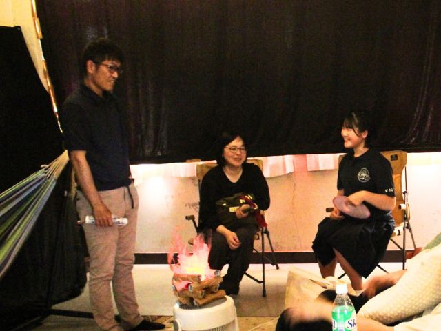 「広報うと」10月号の表紙にも選定されている、人気のグランピングを教室内で再現し、高クオリティな休憩所を実現しました!
