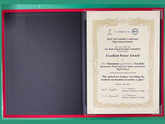 本校探究チームの「The Optical Art of Glass: Unveiling the Aesthetic Mechanism Created by a Glass」(グラスがつくる美の奇跡の解明)が、台湾を含む17校の中から、第2位相当の “Excellent Poster Award” を受賞しました!